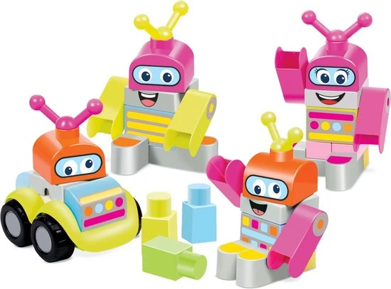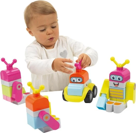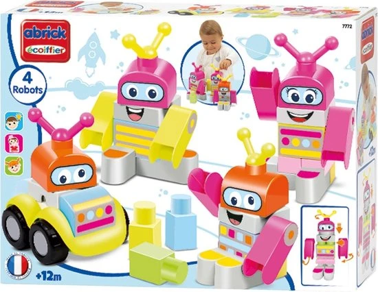 De Ecoiffier Maxi Abrick set bevat leuke, gekleurde blokken om vier verschillende robots mee te maken. Armen en hoofdjes van de robots draaien en met de meegeleverde stickers krijgt elke robot zijn eigen identiteit. De stenen zijn groot, makkelijk met elkaar te verbinden en weer uit elkaar te halen en hierdoor zeer ideaal voor kleine kinderen. Deze Ecoiffier Abrick set is een geweldige manier om de kinderen te stimuleren om creatief te zijn.