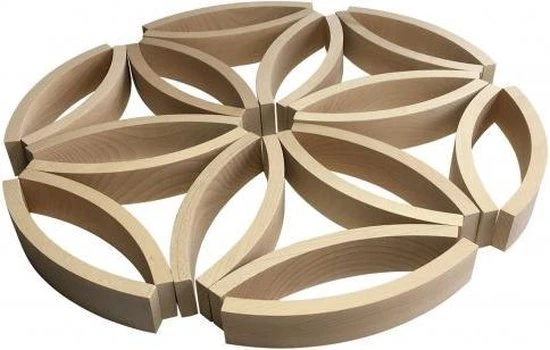 De set bevat 12 licht gebogen blokken, elk bouwblok is 24.5 x 4.8 x 4.8 cm en weegt 155 gram.