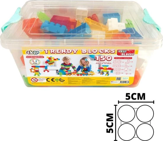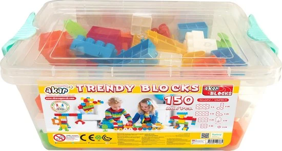Akar Toys Happy Blocks bestaat uit 150st met verschillende vormen en kleuren. Dat betekent dus eindeloze speelpret met de bekroonde Happy Blocks van Akar Toys. Deze grote bouwblokken in vrolijke kleuren stimuleren de creativiteit en fantasie van uw kind.