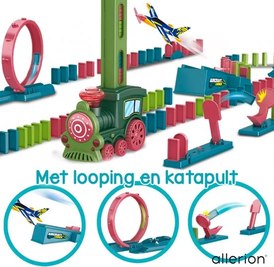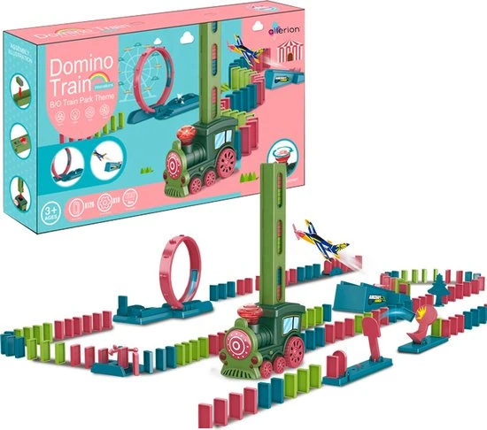 Kun jij de spanning aan en elk domino steentje één voor één neerzetten? Of gebruik je toch het treintje… Daag jezelf en je vriendjes uit om een zo mooi mogelijke dominobaan te maken. Met maar liefst 120 dominostenen en vele gave attributen zoals een vliegtuigje, looping en bruggetje met glijbaan! De mogelijkheden zijn eindeloos, maar let op: één verkeerde beweging en alles valt om!