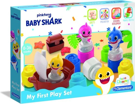 De wereld van Baby Shark komt tot leven met een originele speelset die is ontworpen om kleine kinderen heel veel leuke momenten te bezorgen! De set bevat 3 Baby Sharks, 8 zachte Clemmy-blokken, 1 schatkist, 1 boot met zeil, een kleine vis en een zeester. Het ideale spel om een zee-omgeving in perfecte Baby Shark-stijl te scheppen en fantastische avonturen te bedenken. Stimuleert de handvaardigheid en de fantasie en helpt kinderen om verbanden tussen oorzaak en gevolg te begrijpen.