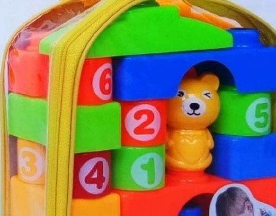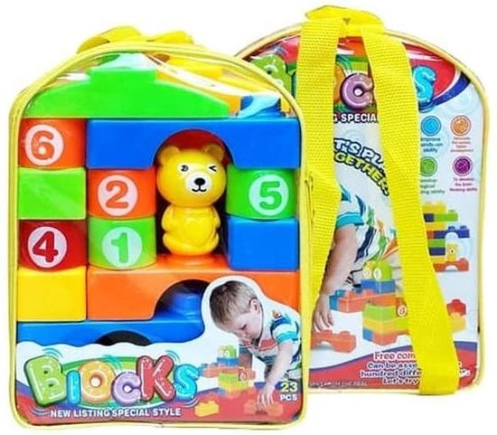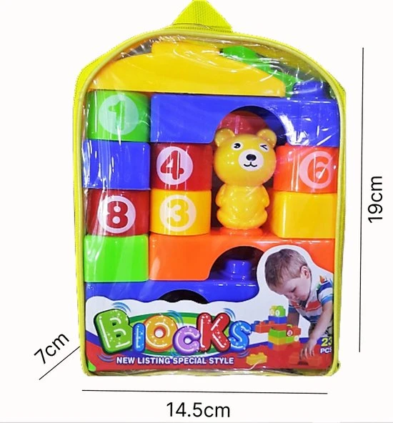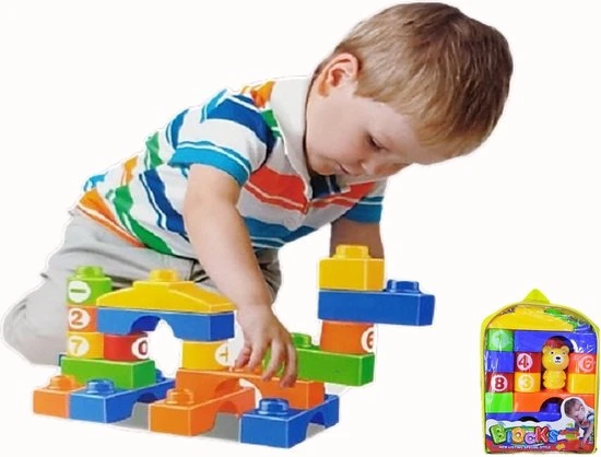 Superleuk cadeau voor de kleine bouwer vanaf 3 jaar. 23 Grote afgeronde blokken in een speelse rugtas.