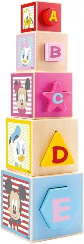 Met deze blokkendoos van Mickey Mouse en zijn vriendjes kan jouw kleintje vormen herkennen en zo wordt de fijne motoriek gestimuleerd. De blokken kunnen op elkaar gestapeld worden.