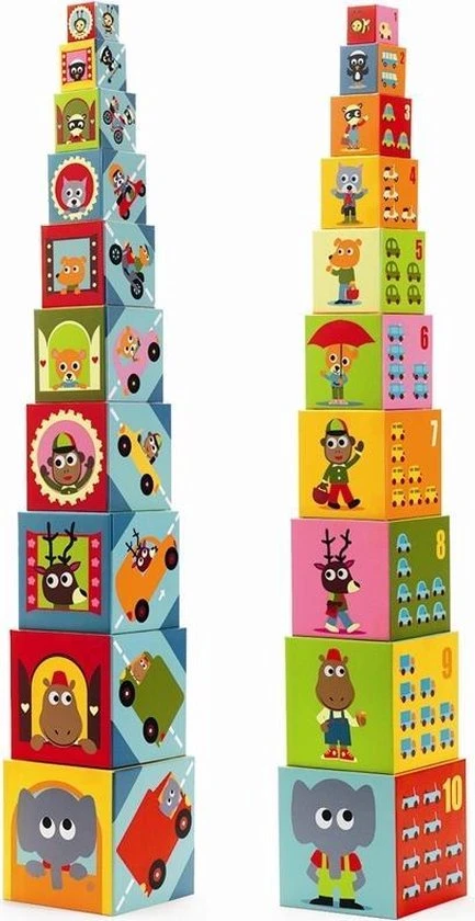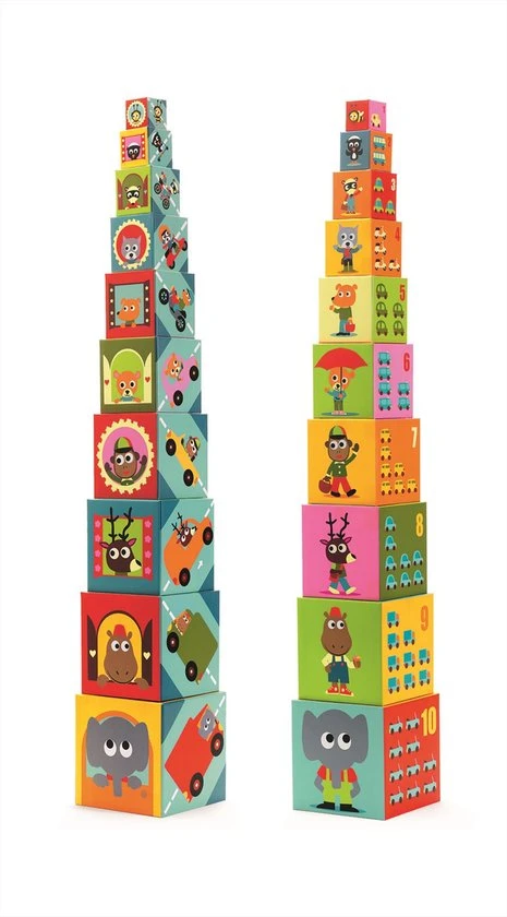 Deze Djeco stapeltoren bestaat uit 10 blokken.