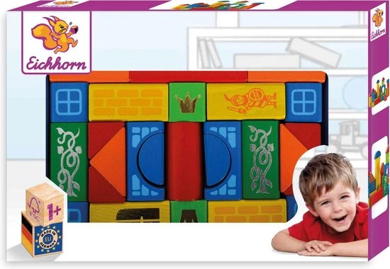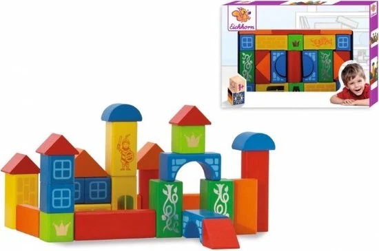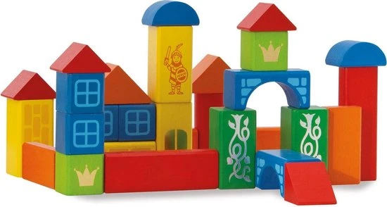 Mooie houten blokken om een kasteel te bouwen voor echte ridders. De set bestaat uit 29 delen.