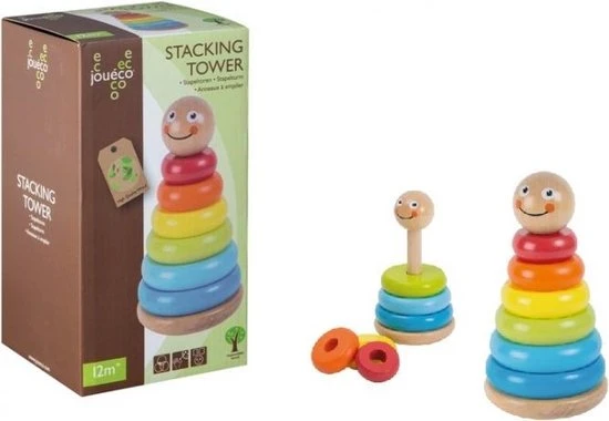 Een traditioneel stukje speelgoed, deze houten stapeltoren van Goki. Dit product is ontwikkeld om peuters te helpen met het leren van vormen, kleuren en het rangschikken daarvan.
