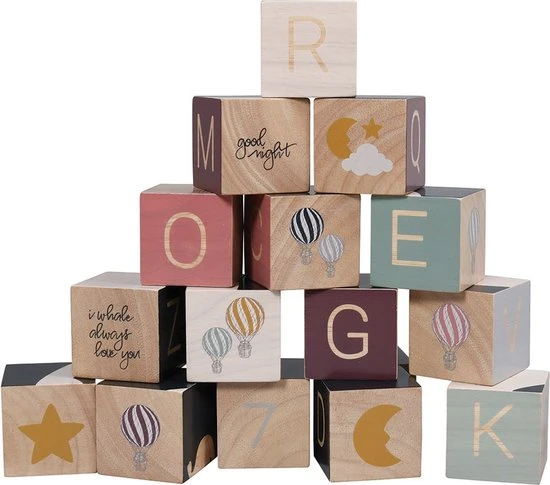 Duurzame houten blokken met nummers, letters, puzzels en meer. Deze houten blokkenset is in samenwerking met Plantoys gemaakt. Gekend voor hun duurzaamheid. De grappige blokken zijn inspirerend, speels en stimuleren het denken.