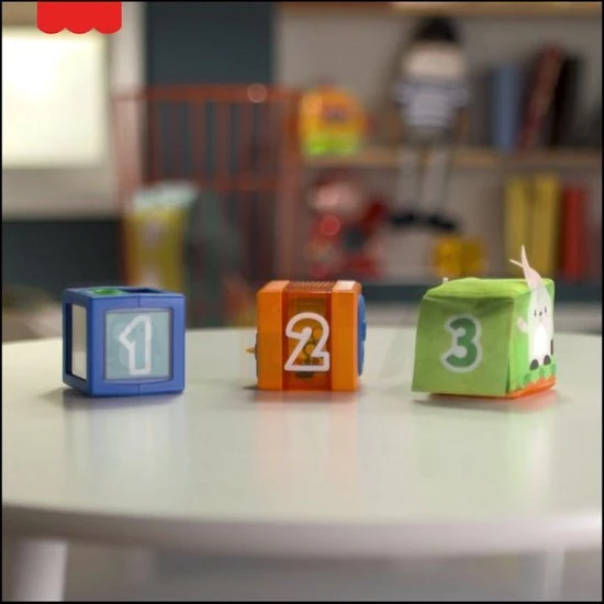 • Elk blok heeft 6 zijden voor opwindend speelplezier met nummers, vriendelijke figuren, verrassingen, een klikschijf, rammelkralen en een spiegel