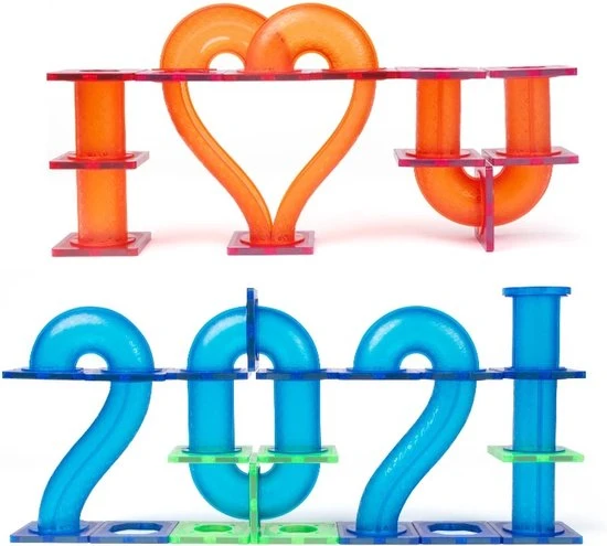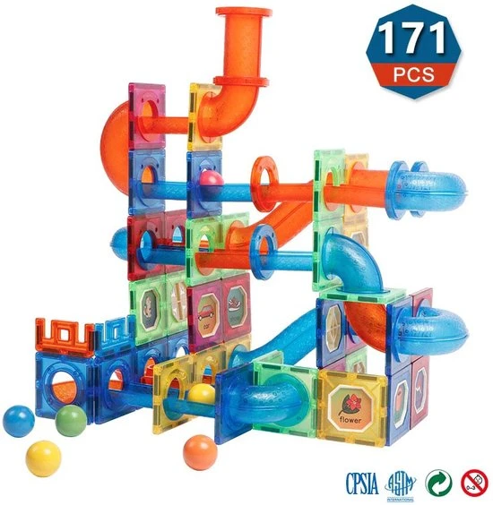 kinderen klikken de stevige plastic onderdelen eenvoudig in elkaar om knikkerdoolhoven boordevol actie te creëren, compleet met duiken, vallen, haarspeldbochten en meer. Pijpen zijn doorschijnend en kunnen ook open worden gelaten, zodat kinderen de marmer terwijl het op en neer rolt over de baan. Het verbetert ook het probleemoplossend vermogen, omdat ze hun ontwerp moeten testen en wijzigingen moeten aanbrengen als de bal het gewenste eindpunt niet bereikt.