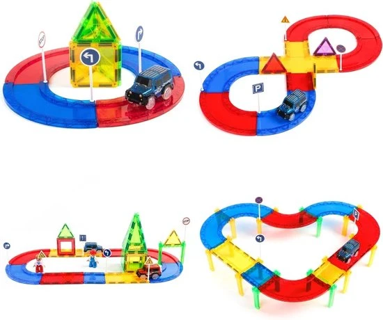 Bevordert probleemoplossende vaardigheden, hand-oogcoördinatie, logische training en fijne motoriek. De Construction Race Car Stackable Building Blocks Toys Kit is voorzien van snel te verbinden magnetische tegels om de stukken gemakkelijk in elkaar te klikken om de architecturale structuur en lay-outs te ontwerpen door simpelweg de wetten van de fysica en de kracht van magneten te gebruiken.