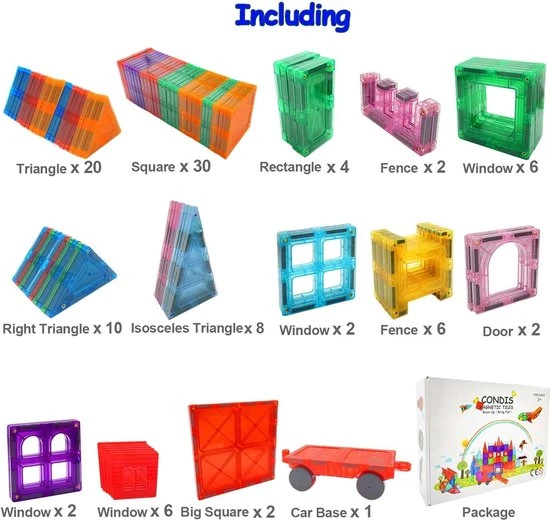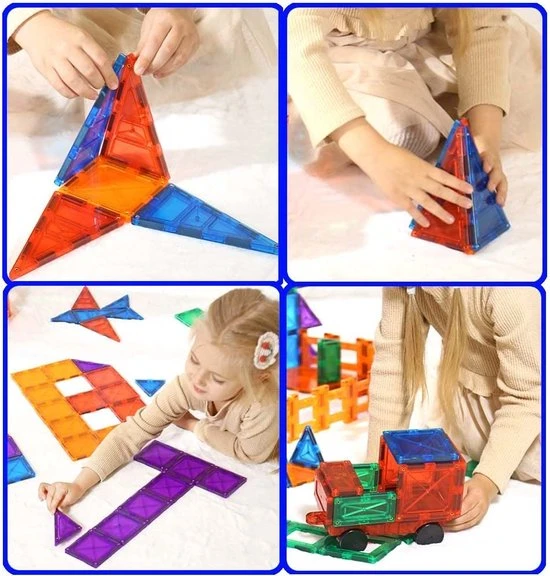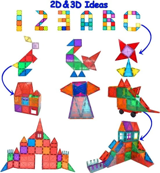 De Magnetisch Speelgoed set bevat maar liefst 101 magnetische blokken, een leuke instructiegids kortom de ideale set voor jouw kinderen om creatief aan de slag te gaan.