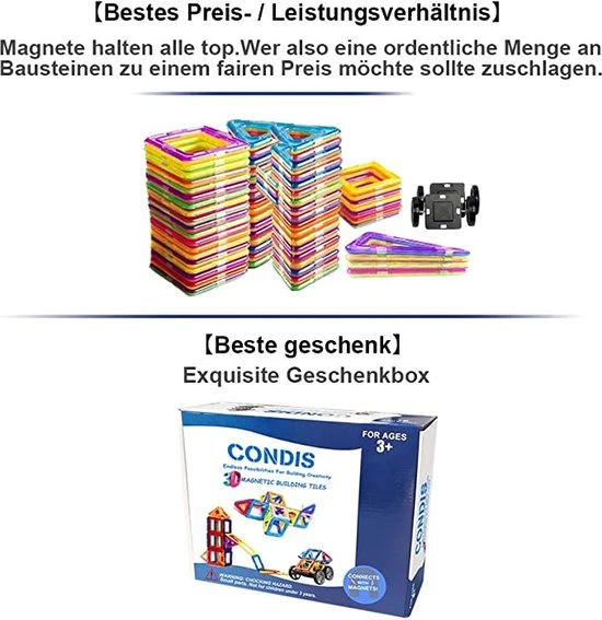 【Beste waarde】– 12 maanden vervangingsgarantie – als een van de onderdelen defect raakt, zullen we deze gratis vervangen. Vergelijk met alle andere vergelijkbare megaaanbiedingen, onze magnetische bouwstenenaanbieding heeft de beste prijs-kwaliteitverhouding. We streven er hard naar om speelgoed van hoge kwaliteit met de BESTE waarde aan onze klanten te bieden.