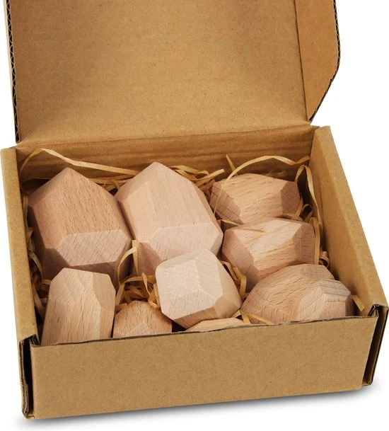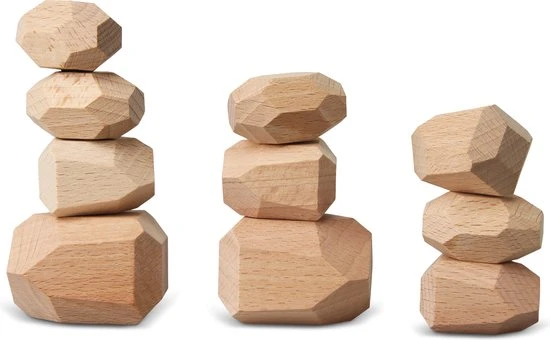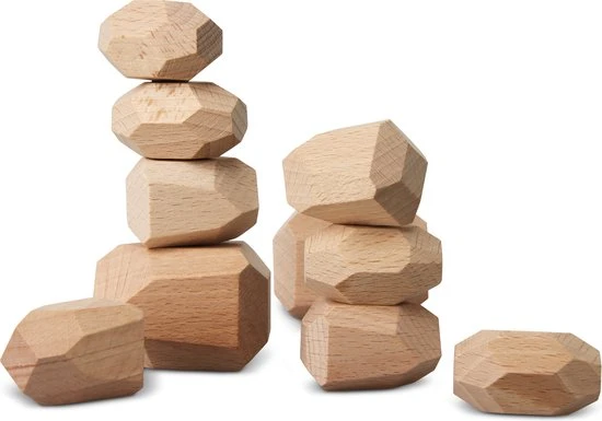 Unieke handgemaakte houten stenen. De blokken variëren van grootte. Met zoveel verschillende vormen en maten zijn ze leuk om vast te houden en te stapelen. Aanbevolen voor kinderen vanaf 3 jaar.