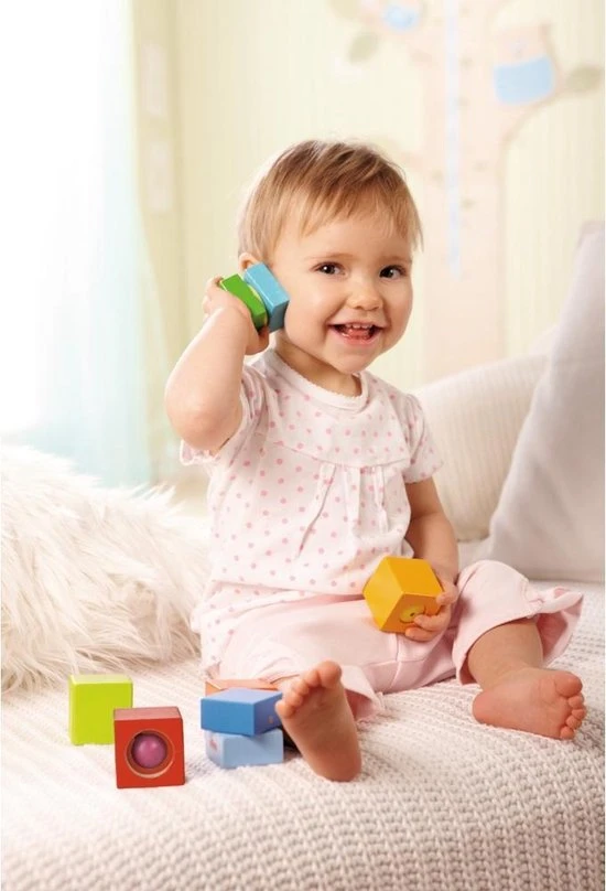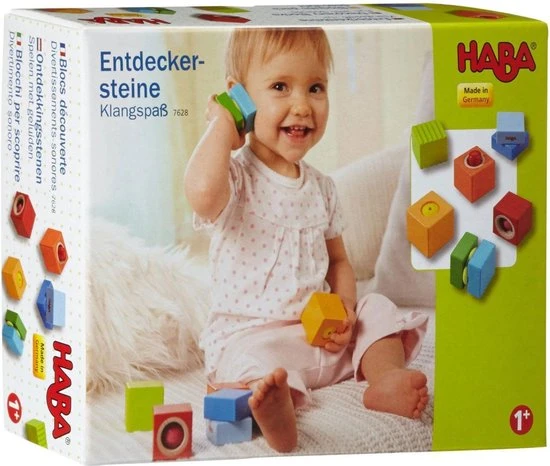 Spits je oren, want hier zijn heel veel verschillende geluiden te horen. Piepen, rammelen, bellen, ratelen, elk blok heeft een ander akoestisch effect. Kleine klankenonderzoekers komen tijdens het spelen met de ontdekkingsstenen helemaal aan hun trekken en hebben lang plezier, want ze maken alle geluiden zelf. Dat bevordert het waarnemingsvermogen en het gevoel voor muziek van jonge kinderen.