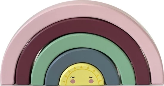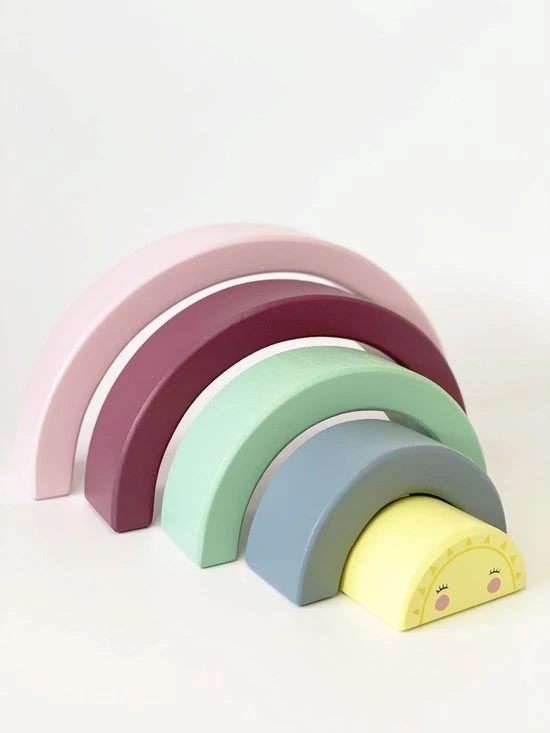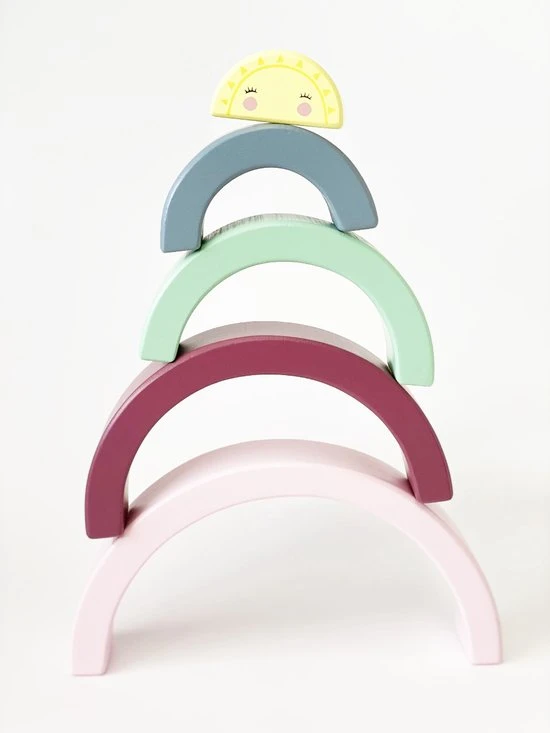Deze 5 delige houten regenboog stapeltoren is meer dan alleen een regenboog. Met de bogen kun je verschillende figuren creëren. De mogelijkheden zijn eindeloos.