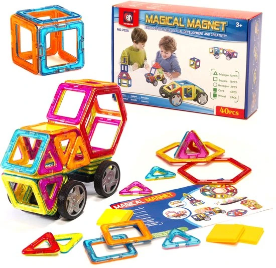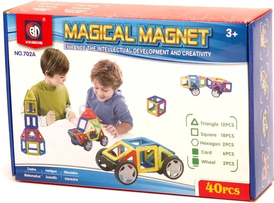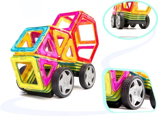 Een grote set magnetische blokken zal het zeker gemakkelijker maken. De set bevat alle benodigde elementen om een ​​uniek huis, speeltuin of fantastische auto te bouwen. De set zal een ware traktatie zijn voor een kleine artiest en constructeur. Laat uw kind een kleine architect worden en plezier en voldoening halen uit uw eigen projecten. De blokken van verschillende vormen helpen je bij het bouwen van unieke structuren. Ze kunnen worden gebruikt om 3D-structuren of platte vormen te maken. Bepaal zelf wat je wilt maken. Het leuke is om de blokken te verbinden met behulp van magneten. Sterke magneten zullen het creëren van een unieke structuur vergemakkelijken. De blokken zijn een geweldige manier voor ontwikkeling en creatief plezier. Stimuleert perfect de verbeelding, stimuleert creatief en out-of-the-box denken en ontwikkelt ook wonderbaarlijk handvaardigheid bij de jongsten. Bovendien zullen verschillende gekleurde blokken een grote hulp zijn bij het leren van de namen van kleuren of het tellen .