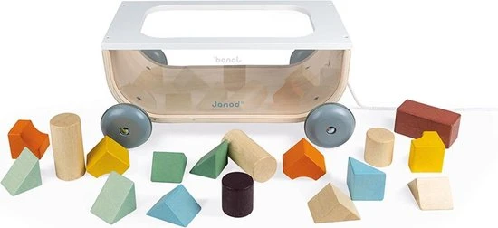 Sweet Cocoon serie: ronde vormen en zachte kleuren. 2-in-1 speelgoed: een bouwspel van 17 blokken en een wagen om vanaf de eerste pasjes van je kleintje overal mee te nemen. De zijkant van de wagen is doorzichtig zodat de blokken altijd zichtbaar zijn. In verscheidene zachte kleuren, geïnspireerd op de huidige trends om uw kind in alle rust te laten spelen! Geschikt voor kinderen vanaf 18 maanden.