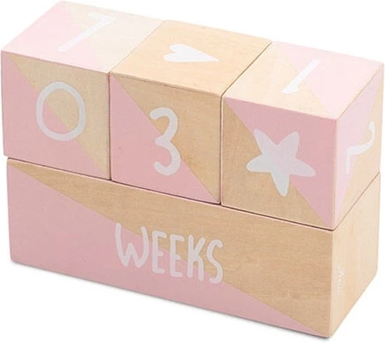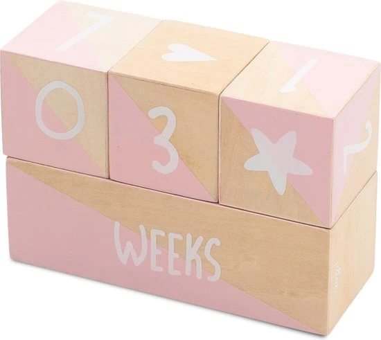 Met deze houten mijlpaalblokken kun je veel combinaties maken zodat je geen enkel moment mist. Zet de blokken samen met jouw buik of baby op de foto en zo weet je later altijd welk moment het precies was.