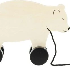 Trek maar aan het touwtje en de ijsbeer gaat gewillig mee. Waar je kind ook naar toe gaat, de ijsbeer rijdt mee. Speelplezier gegarandeerd met deze lieve ijsbeer op wieltjes. En is je kindje nog te klein om met de ijsbeer uit wandelen te gaan? Dan is het perfect als decoratie. Want deze vrolijke ijsbeer is een gezellig accessoire in de vensterbank of op die boekenplank. Leuk als kraamcadeautje.