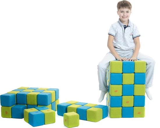 De kubussen zijn veilig voor de kinderen en slijtvast – gevoelig maar zeer duurzaam materiaal (bevat geen ftalaten, cadmium en primaire aromatische aminen), zachte vulstof en afwezigheid van scherpe randen zorgen voor een zeer hoog veiligheidsniveau. Bovendien zijn ze licht en komen ze overeen met de afmetingen van de hand van de kinderen.