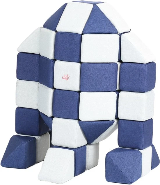 Deze set bestaat uit 50 blokken waarvan 10 halve blokken en 40 rechthoekige blokken. De kleuren zijn blauw en groen. De blokken zijn gemaakt van solide en veilige materiallen, de buitenkant is gemaakt van een zachte stof die geen geluid maakt als de blokken vallen.