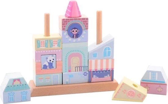Deze vrolijke houten huisjes ontwikkelen kindcoördinatie en logisch denken. Het stapelen van de basiselementen is een goede motorische oefening voor een kind en bevordert de hand-oogcoördinatie. Deze set stapelhuisjes geeft jou gegarandeerd uren speelplezier!