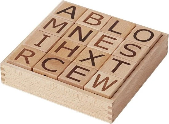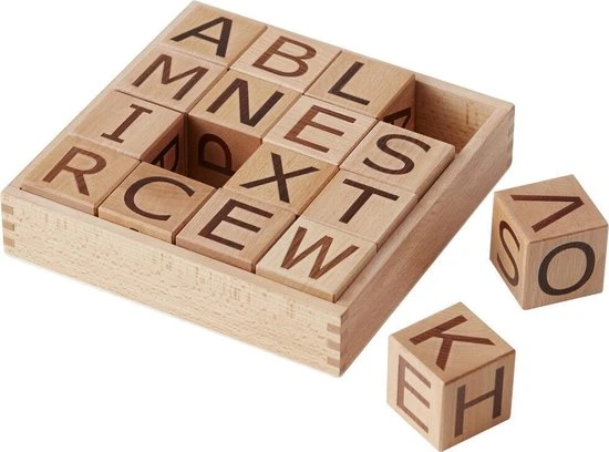 Deze mooie stijlvolle houten blokken van Kids Concept hebben op elke zijde een letter uit het alfabet. In een box zitten 16 blokken, dus in totaal 96 letters om eindeloos veel woorden mee te kunnen maken. Leuk om je peuter speels te laten oefenen met het alfabet of het schrijven van de eigen naam. Of als decoratie op de baby- of kinderkamer.