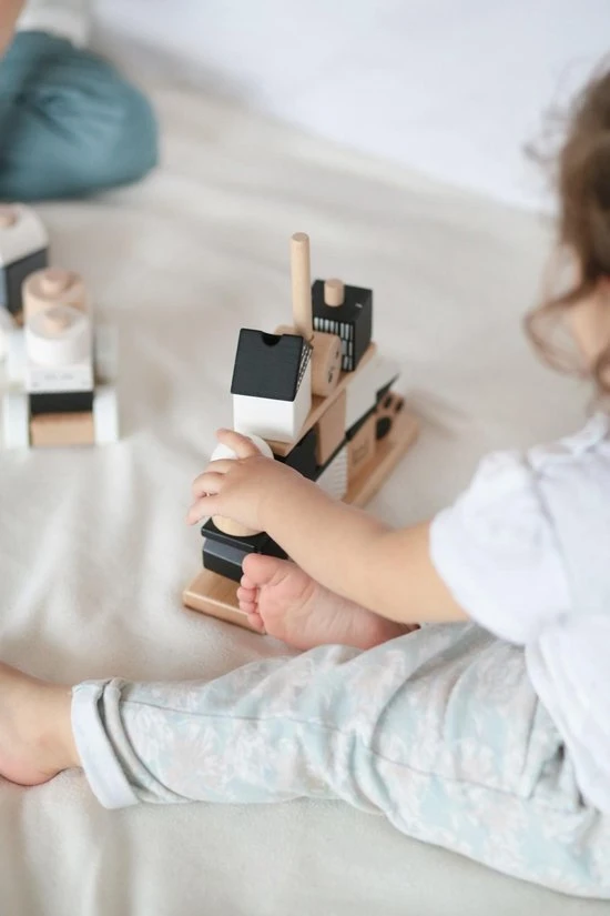 Maak je eigen fantasie huisje met deze houten blokken set van Label Label! De 14 blokken zijn ieder in een andere vorm waardoor het puzzelen wordt om te ontdekken wat wel en niet goed bij elkaar past! Plaats de blokjes op het rekje en maak er een mooi huisje van.