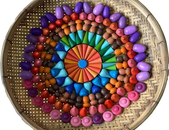 Mandala loose parts set 243 stuks met een houten doos