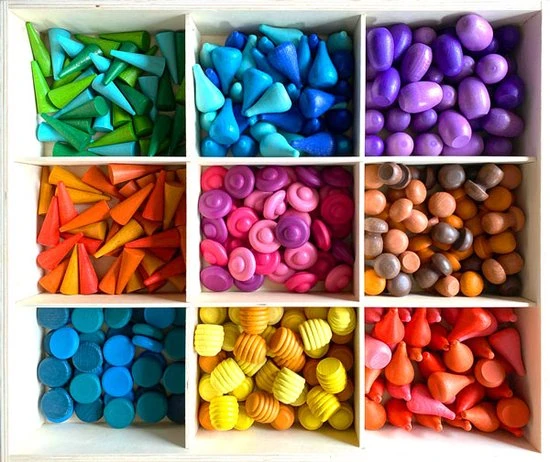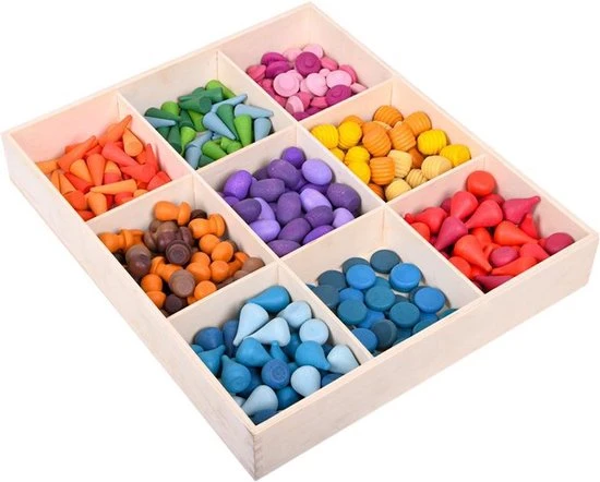 Tel, Sorteer en speel met deze grote set van 243 stuks houten speelvormen en speelfiguren. Het kleurrijke open einde speelgoed bidt talloze creative mogelijkheden.