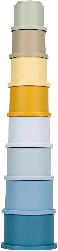 Inhoud: 8 stapelbekers variërend in diameter tussen 6 en 9,5 cm. De hoogte bedraagt 43 cm wanneer alle bekers op elkaar worden gestapeld. Geschikt voor kinderen vanaf 6 maanden.