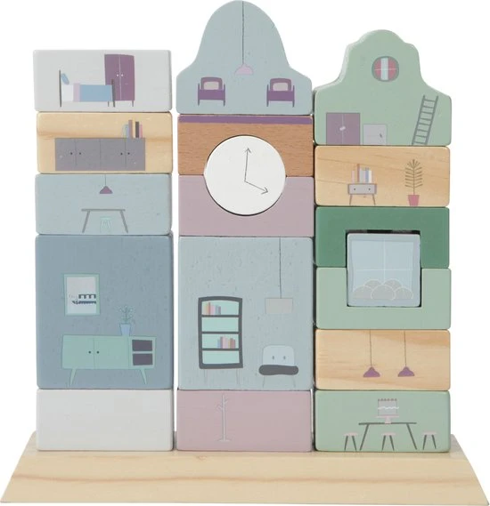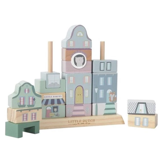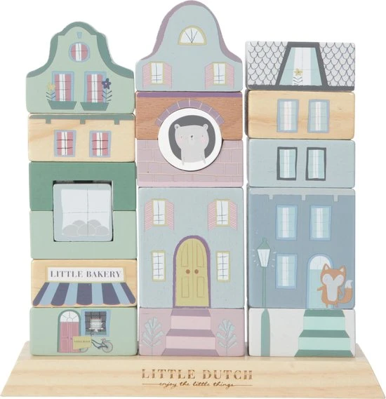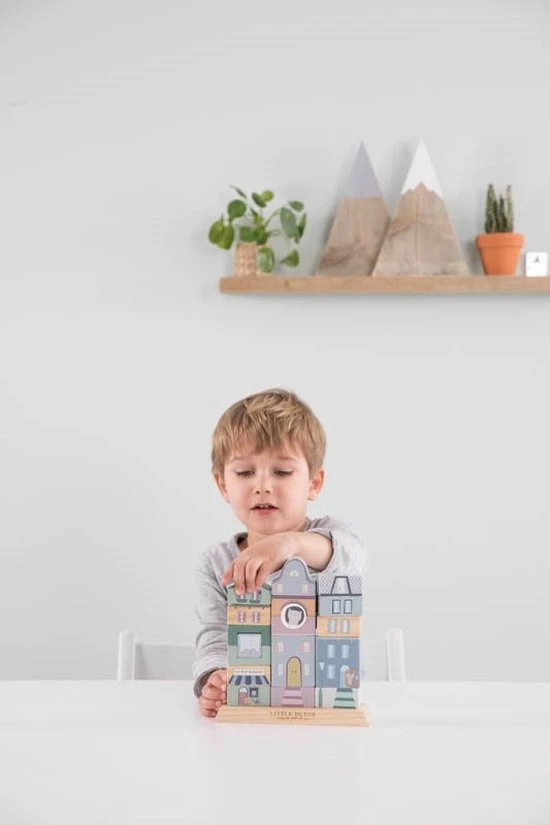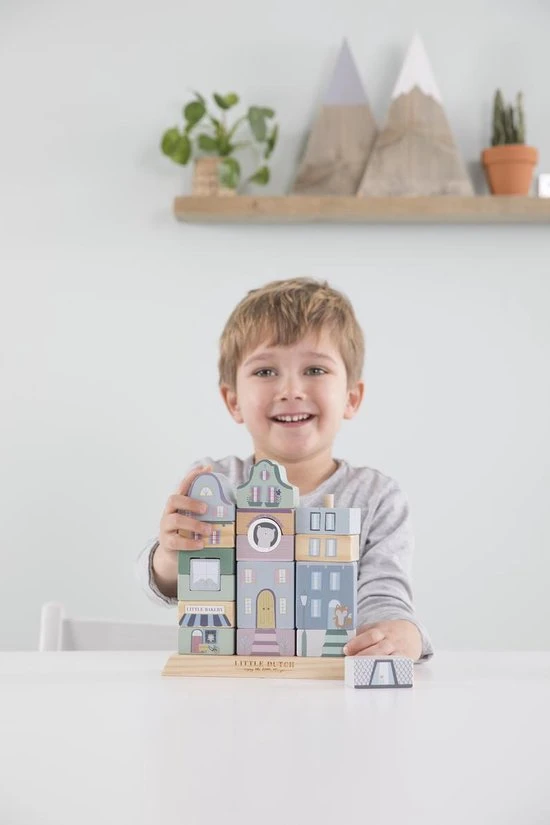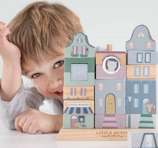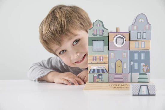 Laat je Koter zijn eigen creatie maken met deze vrolijke stapelgeveltjes in het Little Dutch Adventure blue thema. De set bevat verschillende houten blokjes waarmee je kleintje huisjes kan stapelen. Ook helpt het bij de ontwikkeling van de hand en oog coördinatie.