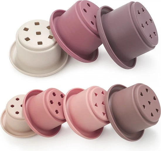Deze silicone stapeltoren heeft 7 gekleurde bekers met op elke beker een ander vormpje. Naast het leuke design is het ook nog eens erg goed voor de motorische ontwikkeling en oog-handcoördinatie van je kleintje. Het leuke is dat ermee gestapeld kan worden. Maar het kan ook als vormpje voor in het zand gebruikt worden of zelfs mee in bad worden genomen.