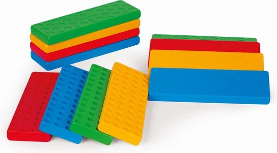 – Je krijgt 4 platformen van 34 cm lang, 11,5 cm breed en 3 cm hoog in verschillende kleuren