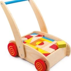 33 delen. Deze stabiele loopwagen is gemaakt van massief hout en multiplex! De gepolijste en verschillend gevormde stenen (5 cm tot 10 cm) gemaakt van beukenhout trainen de motoriek en ook de herkenning van kleuren en vormen.