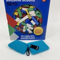 Inhoud: 500 stuks bouwstenen in diverse kleuren inclusief 2 blauwe zweetbandjes