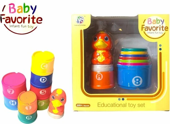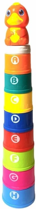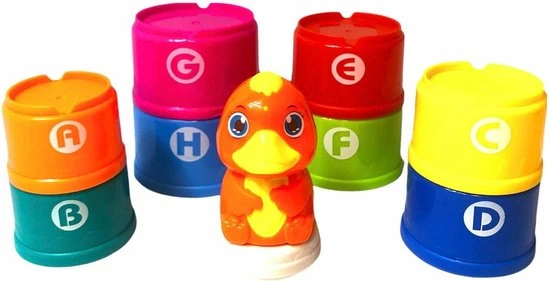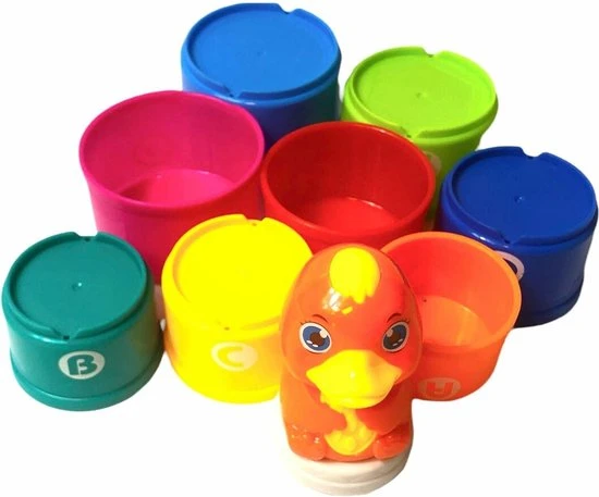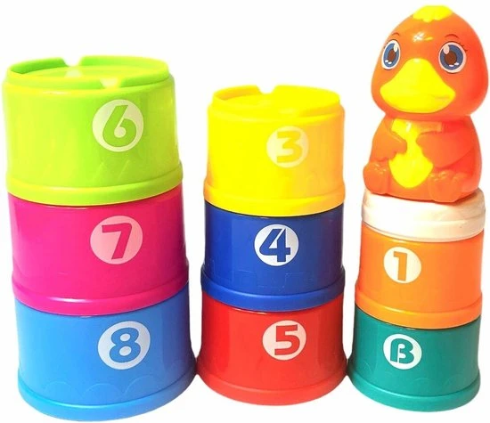 Deze stapelbekers speelgoed bestaat uit 9 onderdelen, namelijk 8 stapelcups en 1 beker met eend erop. De cups hebben vrolijke kleuren, zodat je kindje het steeds leuk blijft vinden om weer met de stapelcups te gaan spelen.