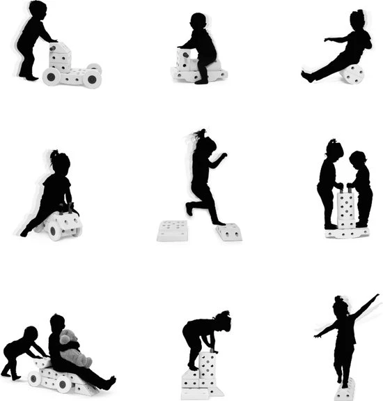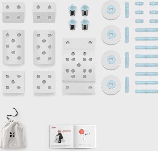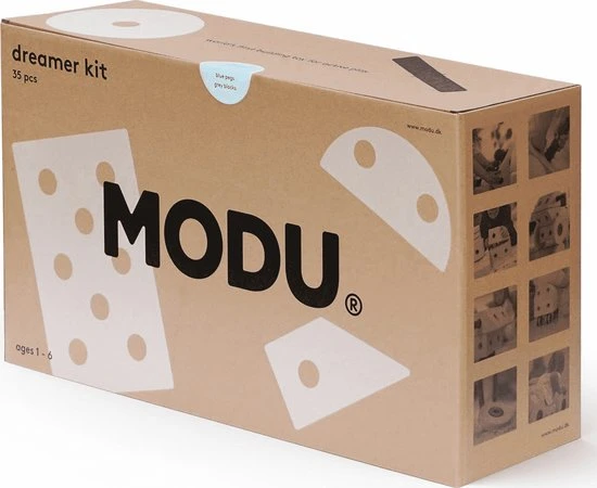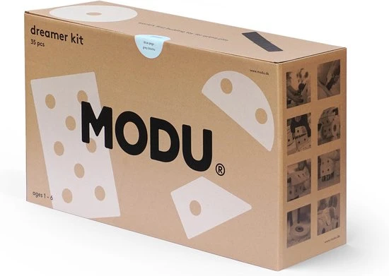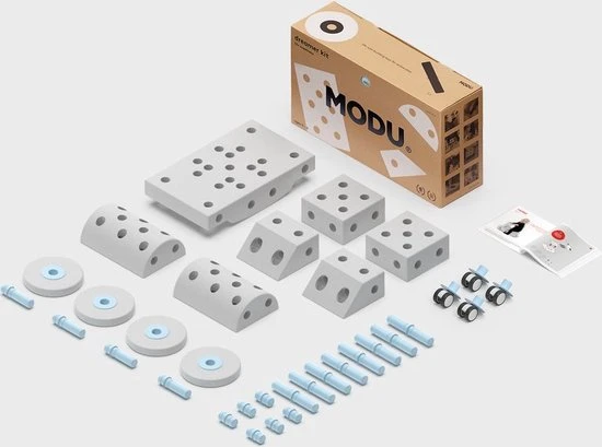 Alle types bouwpakketten ( Curiosity Kit, Explorer Kit, Dreamer Kit en Half Bal kit) is een samengesteld pakket van zachte blokken, staven en wieltjes die geschikt zijn voor jongens en meisjes van 0 – 6 jaar. MODU is ontworpen om veel mogelijkheden te bieden met slechts een paar zachte blokken. Modu is open ended speelgoed, actief speelgoed voor baby’s of voor kinderen van de leeftijd van 1 jaar en meer.