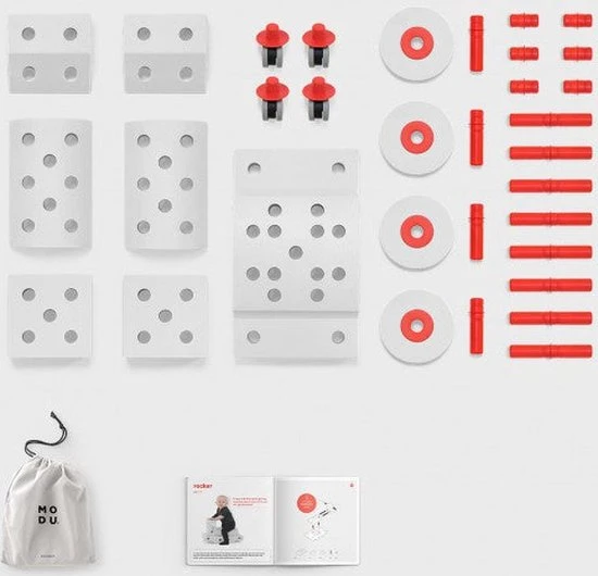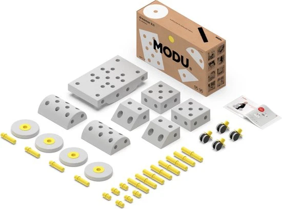 Alle types bouwpakketten ( Curiosity Kit, Explorer Kit, Dreamer Kit en Half Bal kit) is een samengesteld pakket van zachte blokken, staven en wieltjes die geschikt zijn voor jongens en meisjes van 0 – 6 jaar. MODU is ontworpen om veel mogelijkheden te bieden met slechts een paar zachte blokken. Modu is open ended speelgoed, actief speelgoed voor baby’s of voor kinderen van de leeftijd van 1 jaar en meer.