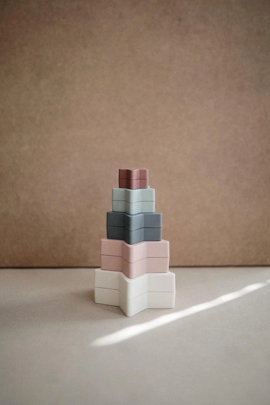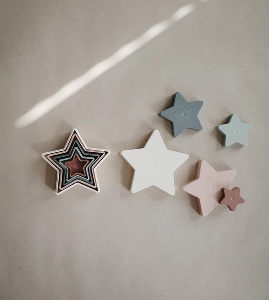 Deze 5-delige set is uitgevoerd in prachtige pastel kleuren en geschikt voor kinderen van 0 tot 3 jaar. De Nesting Stars van Mushie kan je leuk gebruiken als speelgoed in de box of gewoon in de tuin, bad of zandbak. De sterren zijn gemaakt van 100% BPA- en PVC-vrij materiaal en dus helemaal veilig voor je kleintje. Kleine kinderen worden door het stapelen gestimuleerd in de ontwikkeling van de motorische vaardigheden. Deze toren is leuk voor je baby om naar te kijken, om mee te stapen en om uit elkaar te helen en er speelgoed in te verstoppen. De Nesting Stars zitten leuk verpakt in een doosje, een mooi kraamcadeau!