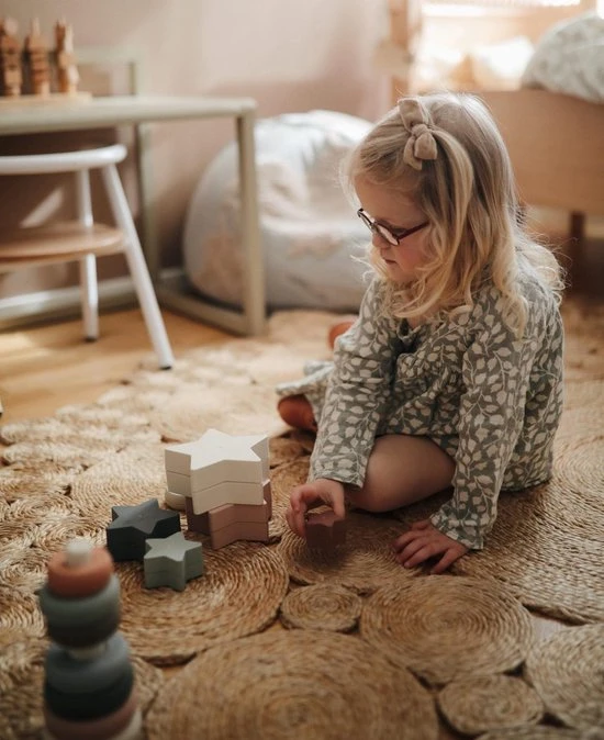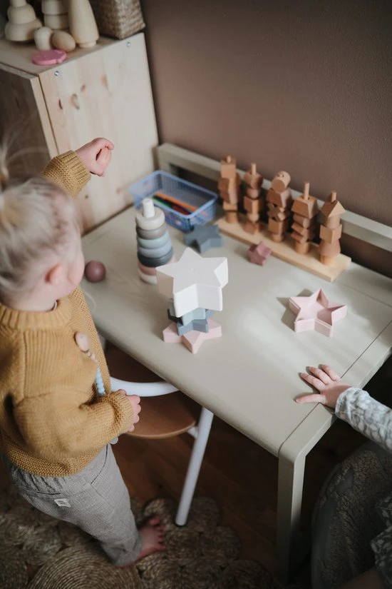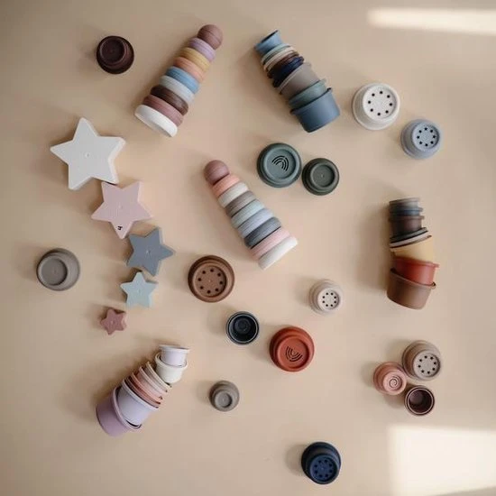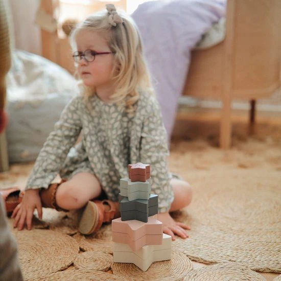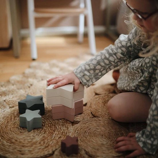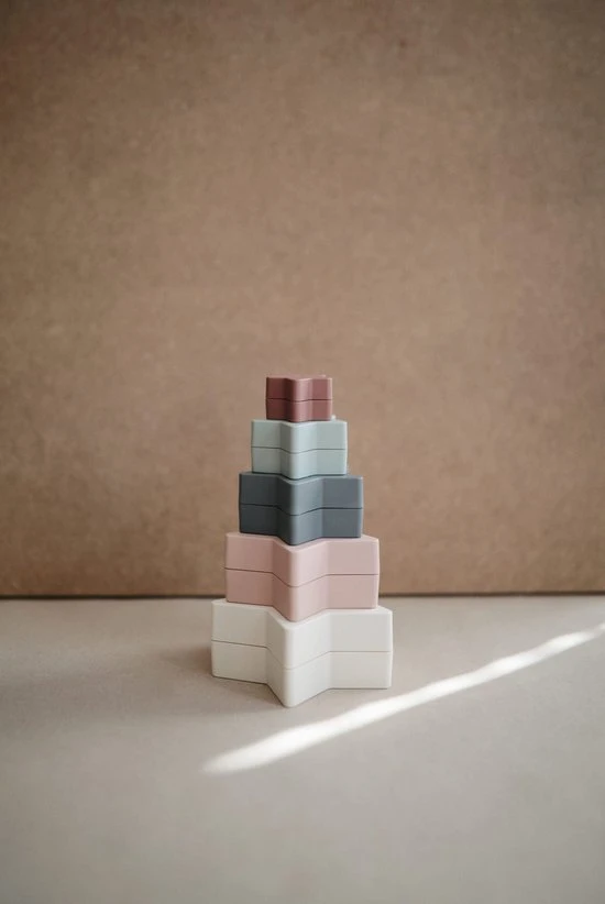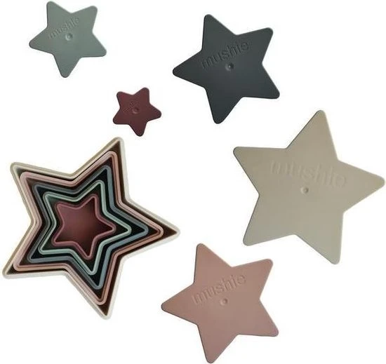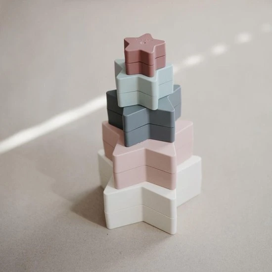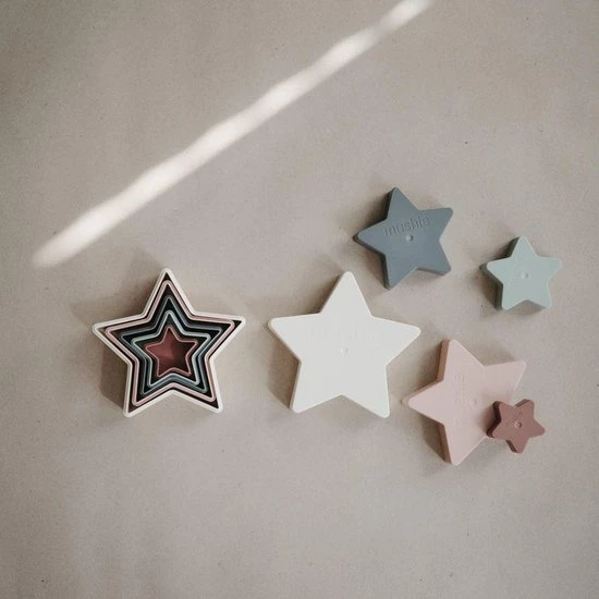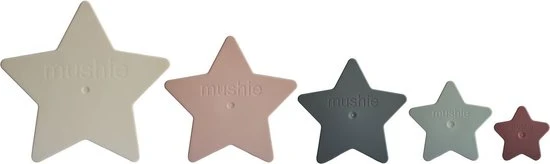Stapeltoren Nesting Star van Mushie. Deze 5-delige set is uitgevoerd in prachtige pastel kleuren en geschikt voor kinderen van 0 tot 3 jaar. De stacking stars van Mushie kan je leuk gebruiken als speelgoed in de box of gewoon in de tuin, bad of zandbak. De sterren zijn gemaakt van 100% BPA- en PVC-vrij materiaal en dus helemaal veilig voor je kleintje. Kleine kinderen worden door het stapelen gestimuleerd in de ontwikkeling van de motorische vaardigheden. Deze toren is leuk voor je baby om naar te kijken. Deze nesting stars zitten leuk verpakt in een doosje, een mooi kraamcadeau!