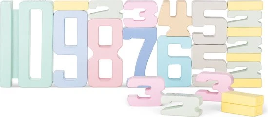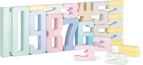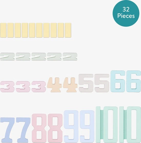 - IN DE DOOS: De set bestaat uit in totaal 32 blokken in verschillende kleuren en afmetingen. Je ontvangt 10x het cijfer 1, 5x het cijfer 2, 3x het cijfer 3 en 2 stuks van de cijfers 4, 5, 6, 7, 8, 9 en 10.
