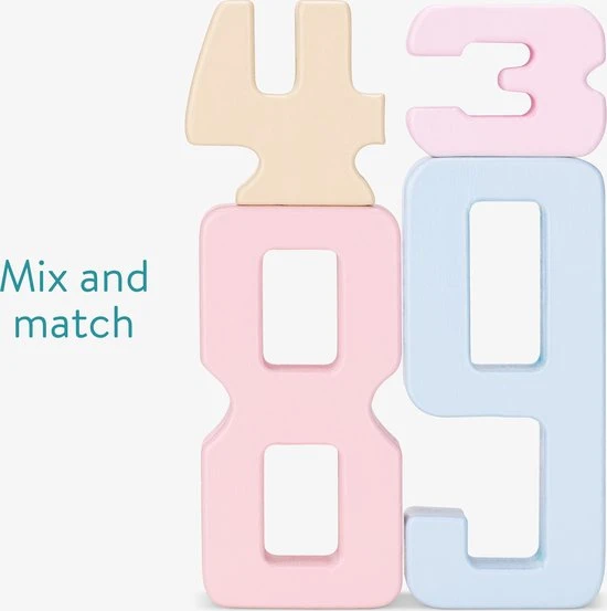 - SLIM DESIGN: De hoogte per blok is relatief aan het uitgebeelde cijfer. Zo zijn gestapelde blokken even hoog als de uitkomst van de som. De cijfers 2 en 3 samen zijn bijvoorbeeld even hoog als 5. Zo kan je kind zelfs al zijn eerste sommetjes leren!