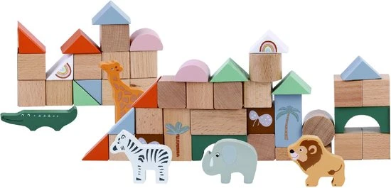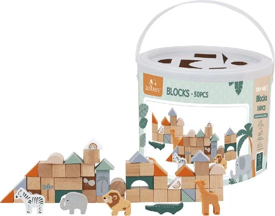 Bouw en stapel de mooiste torens met de beuken houten blokken van Zookabee Er zitten maar liefst 50 stuks in de ton. Dit is de perfecte manier om de creatieve kant van jouw kindje te stimuleren.