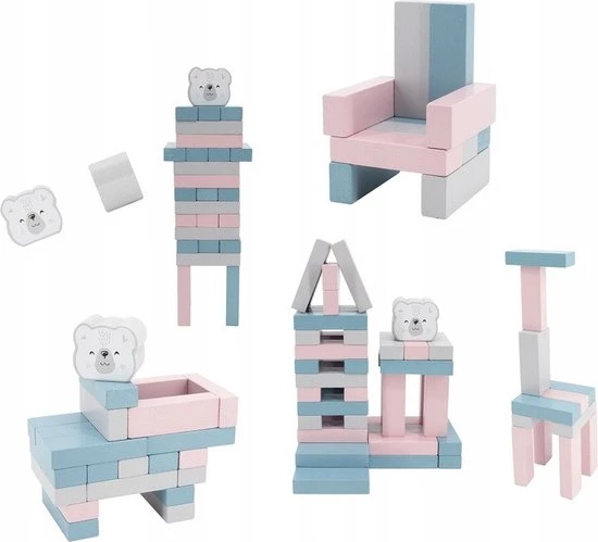- Inclusief 54 bouwblokken, een ijsbeerblokje en twee dobbelstenen
