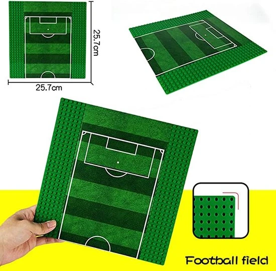 Crieer je voetbalveld met deze 2 losse platen. Zet je lego poppetjes van Lego city of Lego Marvel en speel een wedstrijd Lego voetbal. Mooi te combineren met Lego Wegplaten, Lego groene-zwarte-blauwe platen.