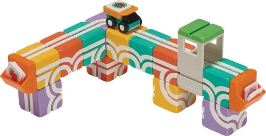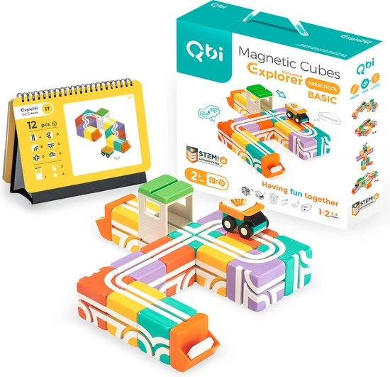 Bouw je eigen autobaan met de magnetische kubus blokken en hulpstukken van QBI.