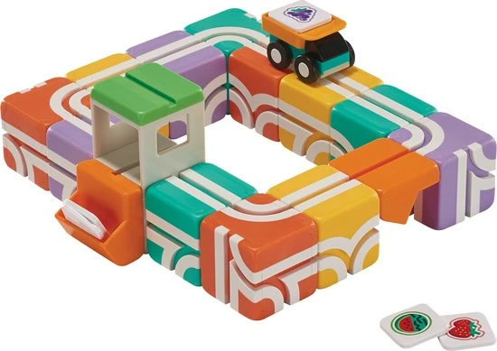 In dit pakket; de Preschool basic zitten 12 blokken, 1 truck, 1 supermarkt, 2 mand met in totaal 5 fruitkaarten en 1 boekje met opdrachten. Je kunt 30 verschillende opdrachten maken. Maar je kunt natuurlijk ook zelf aan de slag en een eigen baan maken naar inzicht.