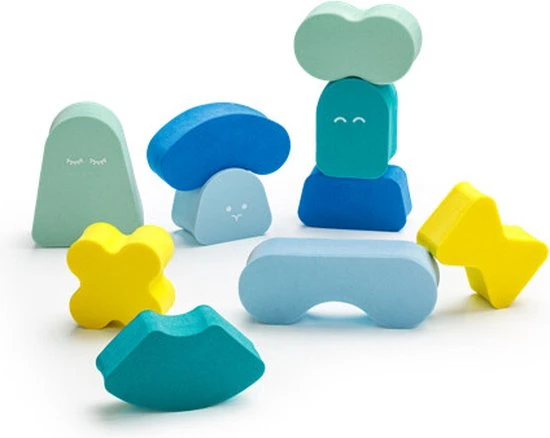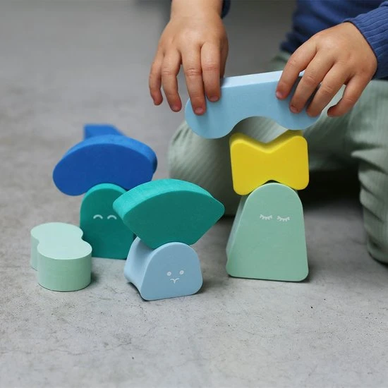3 van de blokjes hebben een guitig gezichtje die de verbeelding van je kids op hol laten slaan en hen allerlei verhalen zullen laten creëren. Multifunctioneel en open-ended speelgoed op z’n best!