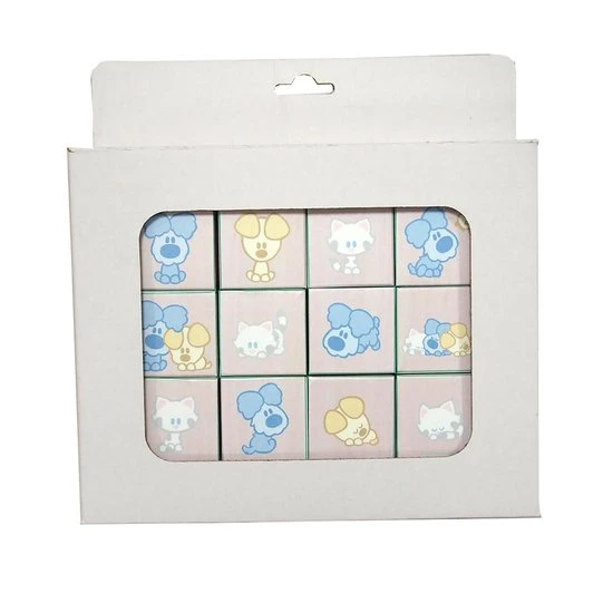 Schattige Woezel en Pip baby blokken, gemaakt van hout. De blokken zijn voorzien van superleuke Baby Woezel en Pip printjes in zachte kleurstelling. Verpakt per 12 in een full-colour doos en voorzien van allerlei afbeeldingen. Afmeting blok: 4,5cm. Verpakt in full-colour vensterdoos.